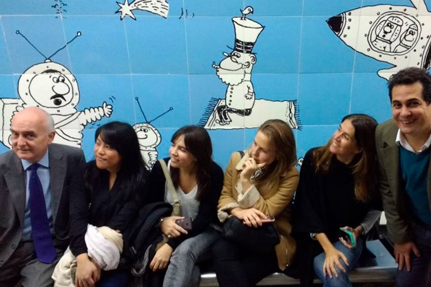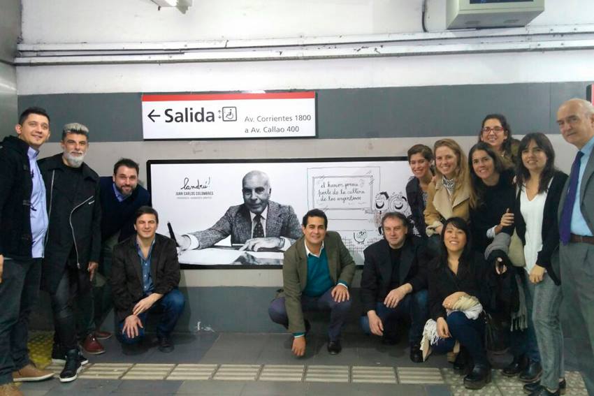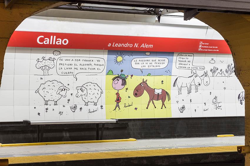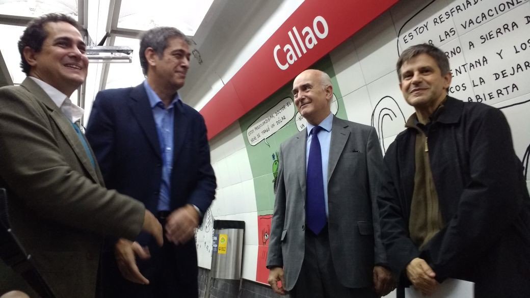 Dos murales del humorista gráfico Juan Carlos Colombres, conocido como Landrú, fueron inaugurados en la estación Callao de la línea B del Subterráneo de Buenos Aires