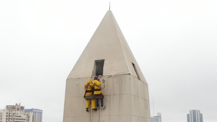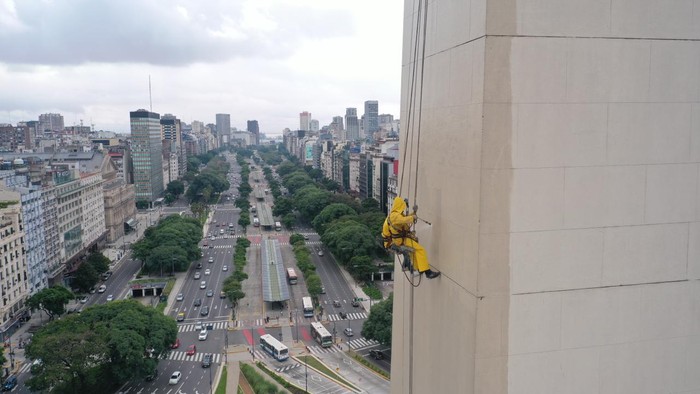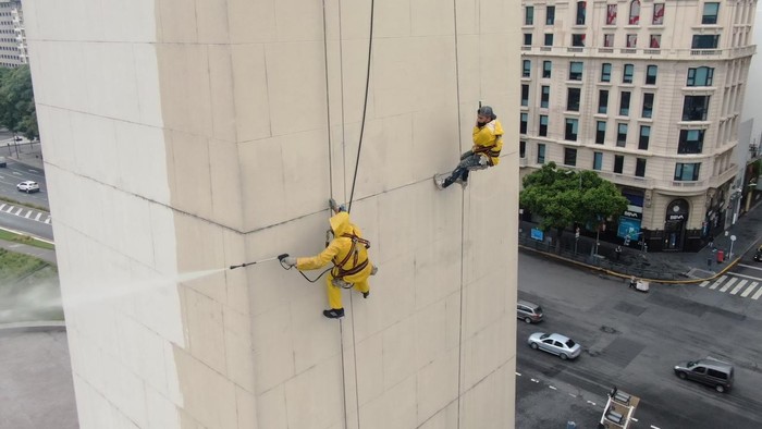 “Es importante recuperar el esplendor de uno de los grandes símbolos de la Ciudad que en mayo cumple 85 años. Durante casi dos meses vamos a estar realizando tareas de mantenimiento y pintura en el ícono de la Ciudad y patrimonio de nuestro paisaje urbano”, expresó la Ministra de Espacio Público e Higiene Urbana Clara Muzzio.