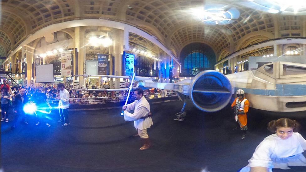 Antes del estreno del Episodio VII, en el shopping del Abasto se puede ver una réplica de tamaño real de la X-Wing, la emblemática caza que combatió contra el imperio en la saga galáctica.