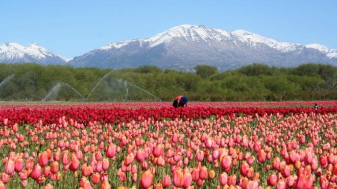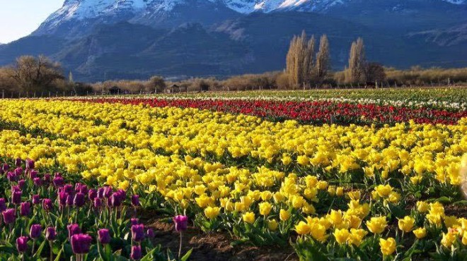 El campo de tulipanes de Trevelín, el más importante del país, es un ícono de la región. Con una superficie de tres hectáreas en donde se desarrollan unas 27 variedades de colores de tulipanes.